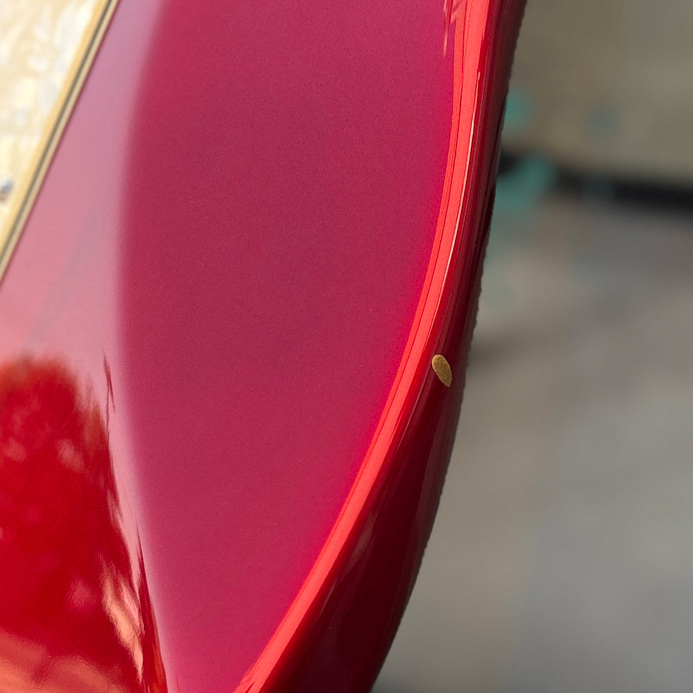 Very good used condition with moderate use and light wear for age. Guitar appears all original including original molded hardshell case and trem bar. Light polish swirl throughout body and several small nicks and chips as pictured. Good overall playability with plenty of life in the frets. Guitar weighs 8 lbs 5 oz.