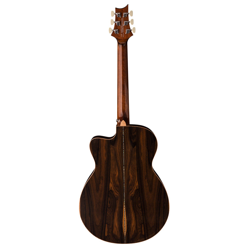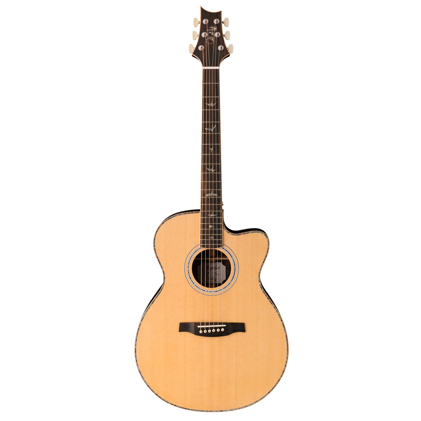 The PRS SE A60E pairs ziricote back and sides with a solid spruce top. The tone favors a full bottom end with rolled-off highs reminiscent of some vintage acoustic guitars. When matched with PRS hybrid “X”/Classical bracing, which allows the top to freely vibrate, the SE A60E’s voice projects with breathtaking volume and delicate nuance. The Angelus Cutaway body shape delivers comfort and playability, well suited for picking and fingerstyle playing.