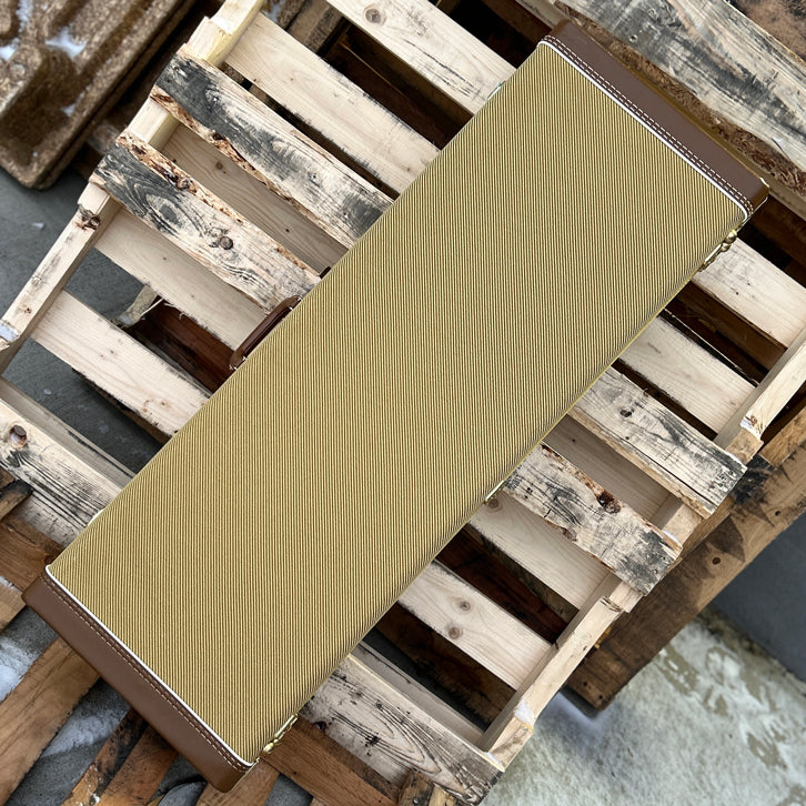 Excellent used condition with minimal use and very well kept. No notable damage and still has protective plastic on pickguard. Guitar is all original and includes original tweed hardshell case as well as trem bar, tags, and strap. Guitar weighs 7.14 lbs.