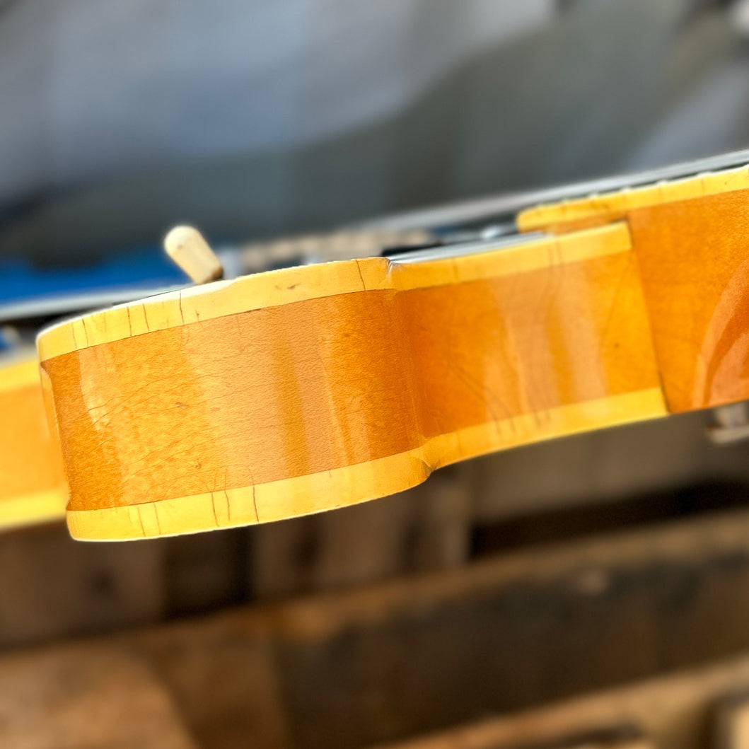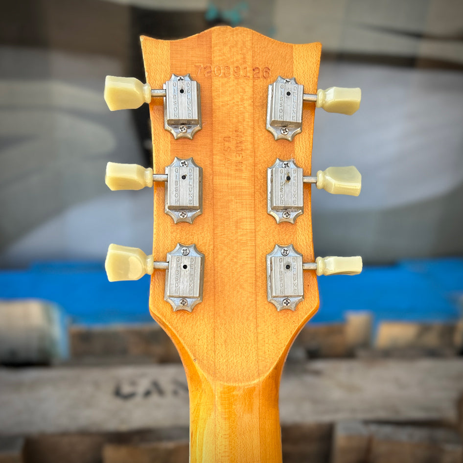 Very good used condition for age! Appears to be all original with exception of the bridge pickup ring (original ring included but is warped). Gently used with no major damage or wear to note. Guitar was signed by East coast Canadian blues legend Dutch Mason and the signature has light lacquer on it to preserve the signature. Includes the well worn original hardshell case. Guitar weighs 8 lbs 5 oz.