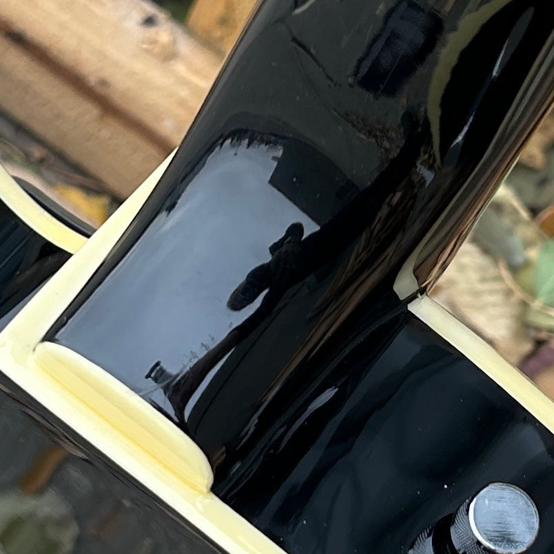 Very good used condition with minimal signs of use. There is some minor polish swirl in the black finish but its really only noticeable when held against a light source. Brand new strings. Playability is great. No issues or damage to note.